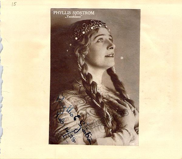 British-born Finnish soprano (1888-1960), signed photo, shown as Elisabeth in Wagner's Tannhauser, dated in 1928. 3.5 x 5.25 photo mounted onto album page, total item size is 6 x 7 inches, in excellent condition.