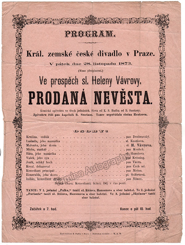 Smetana, Bedrich - Bartered Bride Program with him conducting + Photo Smetana, Bedrich - Bartered Bride Program with him conducting + Photo