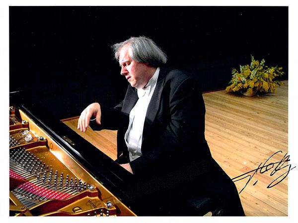 Russian concert pianist (b.1950), widely admired for his interpretations of a broad repertoire. Signed photo, shown in performance. Size is 6.5 x 8 inches, in excellent condition.