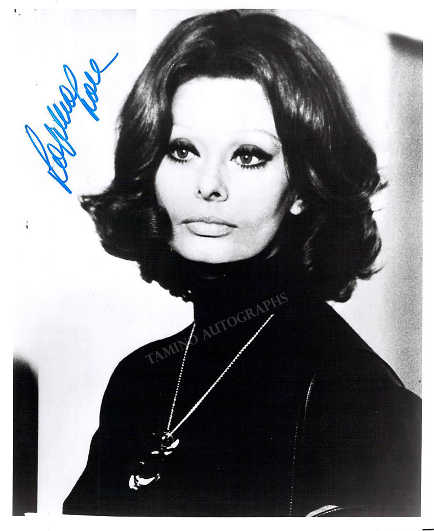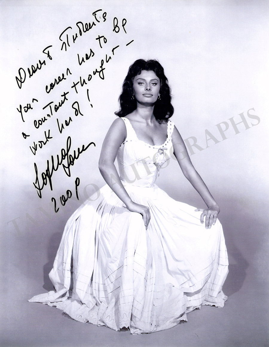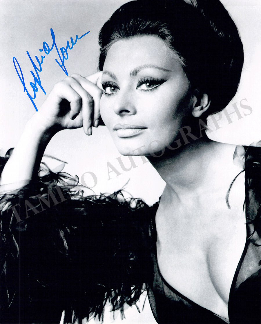 Gorgeous black-and-white photograph signed by her, shown in the film That Kind of Woman (1959). Size is 9.8 x 8 inches, in excellent condition.