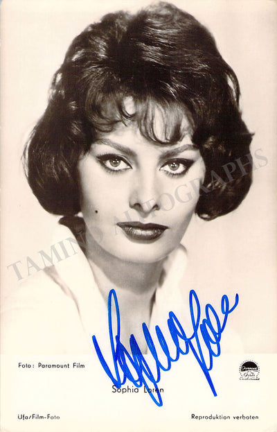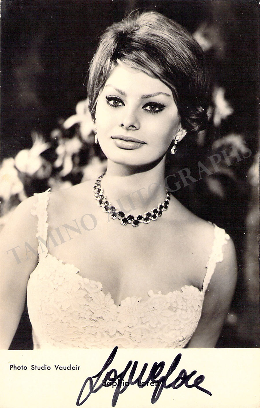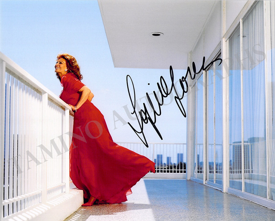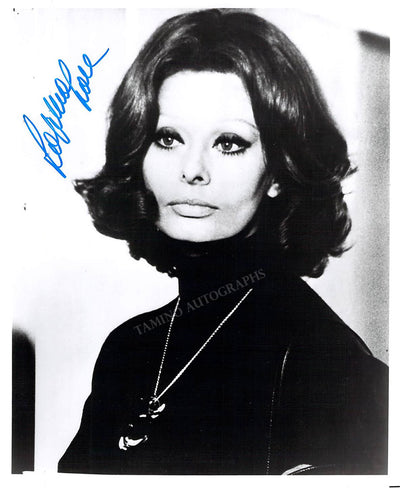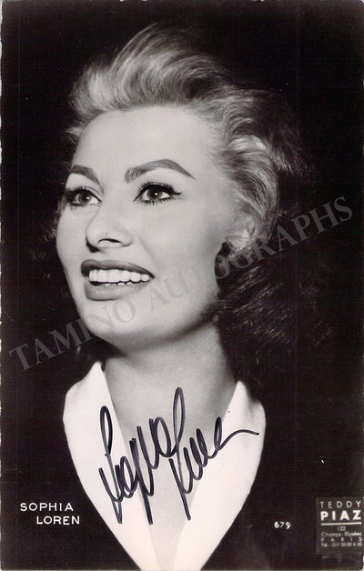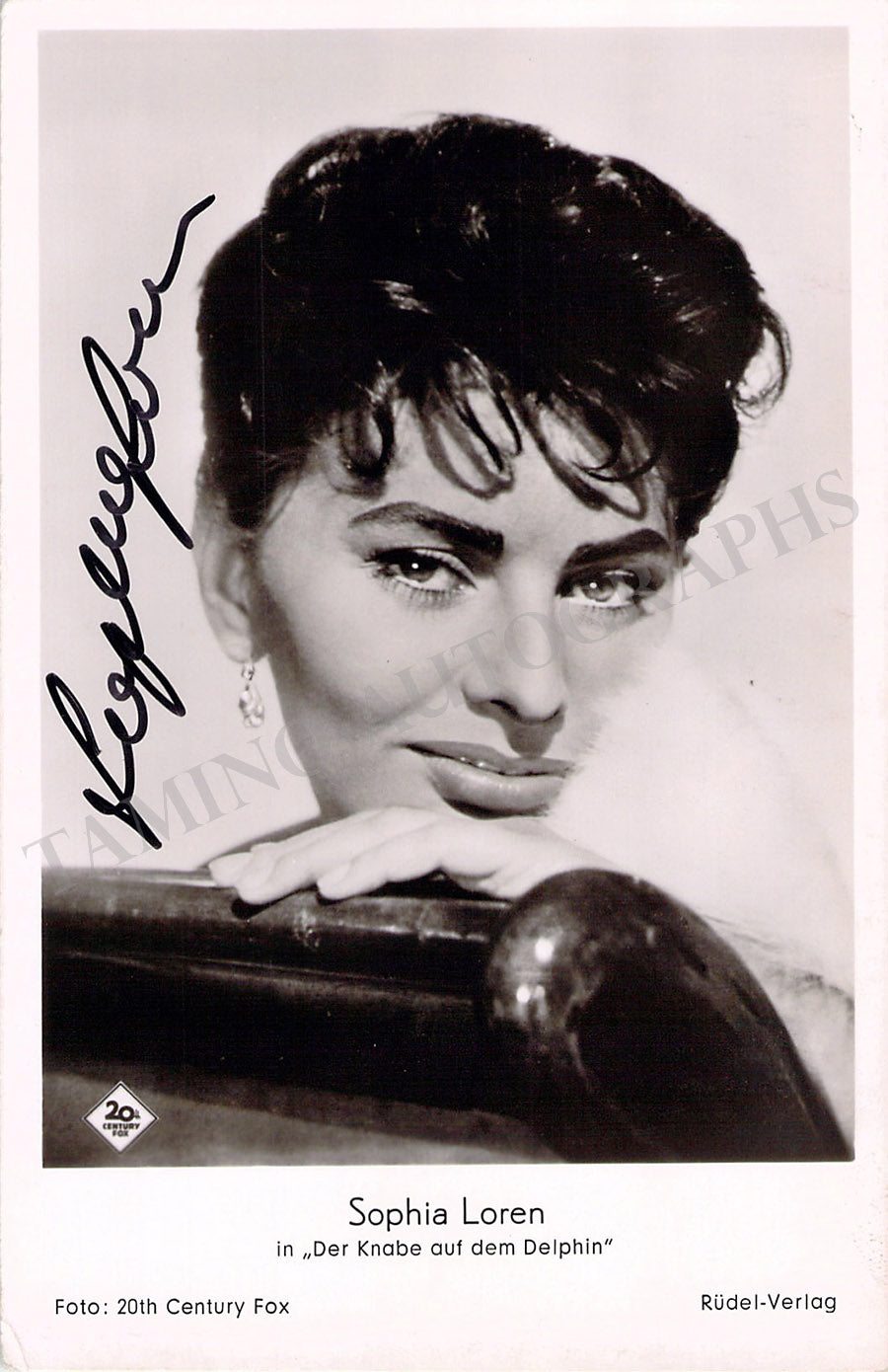Gorgeous black-and-white photograph signed by her, shown in the film That Kind of Woman (1959). Size is 9.8 x 8 inches, in excellent condition.