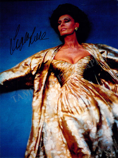 Fantastic color studio photograph signed by her. Size is 9.9 x 7.9 inches, in excellent condition.