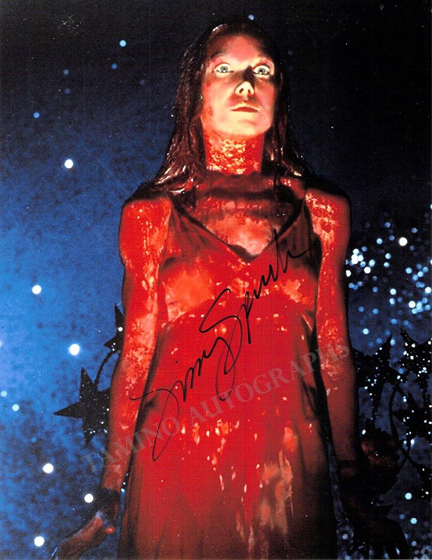 American actress and singer (b.1949) and American actor (b.1951), voice artist, and musician.  Signed color photo shown in the 1976 film "Carrie".  Size is 8.5 x 11 inches, in excellent condition.