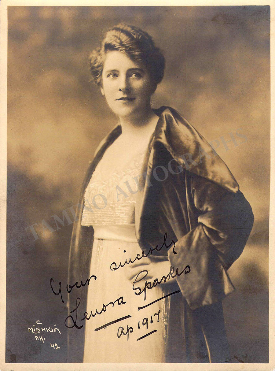 Signed and inscribed photo, shown as herself, dated in 1916. Clear and bold signature. Photo by C. Mishkin, New York. Size is 6 x 8 inches, in excellent condition.