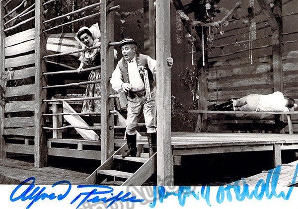 Austrian soprano Irmgard Stadler (b.1937) and German tenor Alfred Pfeifle (1916-1985), photo signed by both singers, shown in performance. Size is 5.75 x 4 inches.