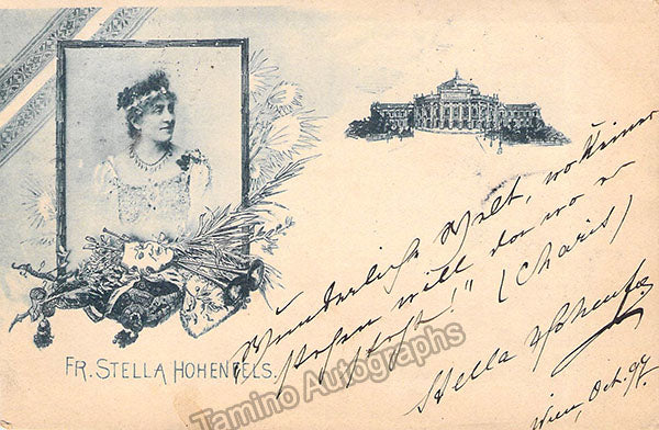Fine photo postcard signed by her with a short sentiment dated 1899. Size is 5.4 x 3.4 inches, in very good condition.