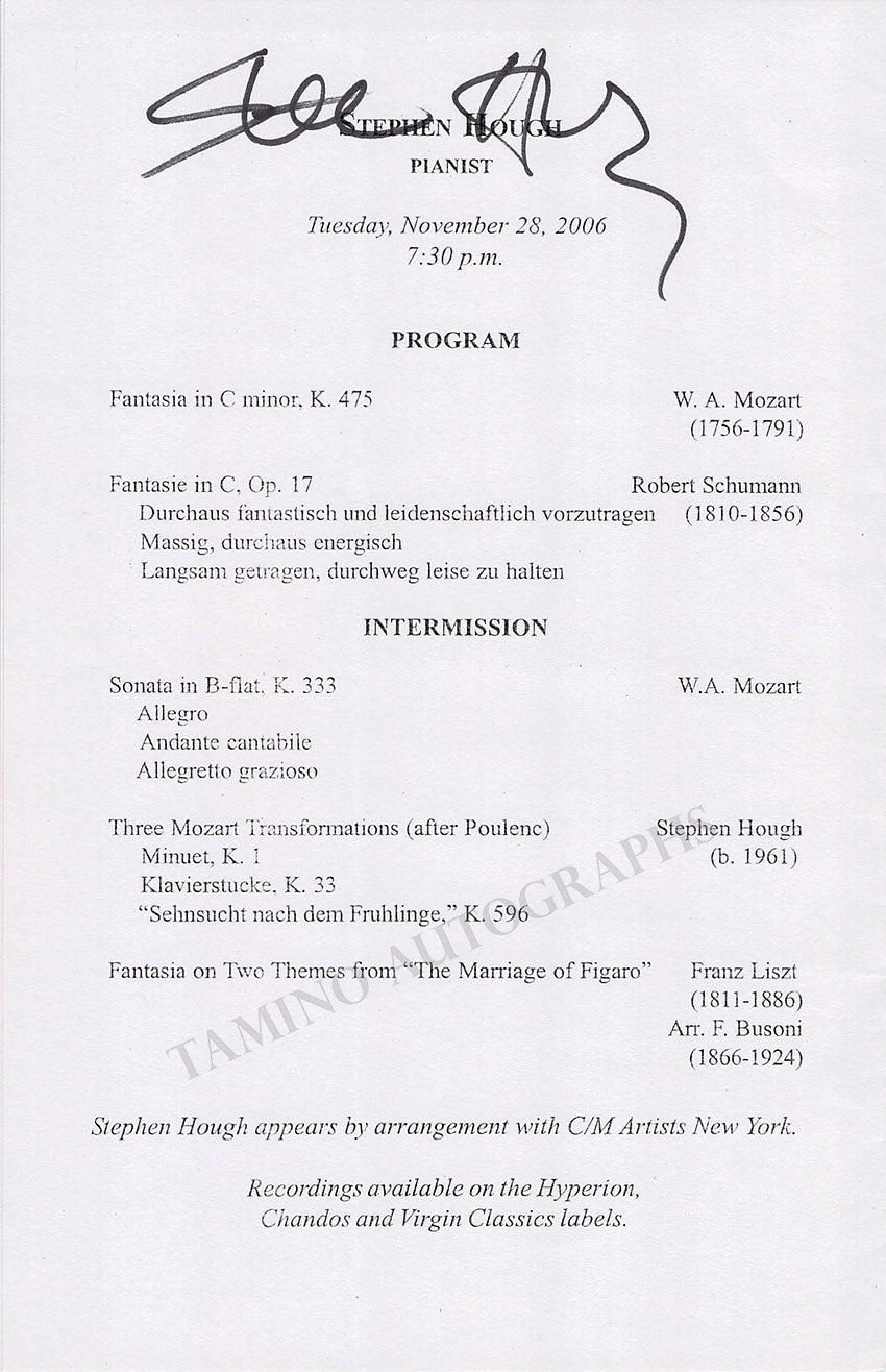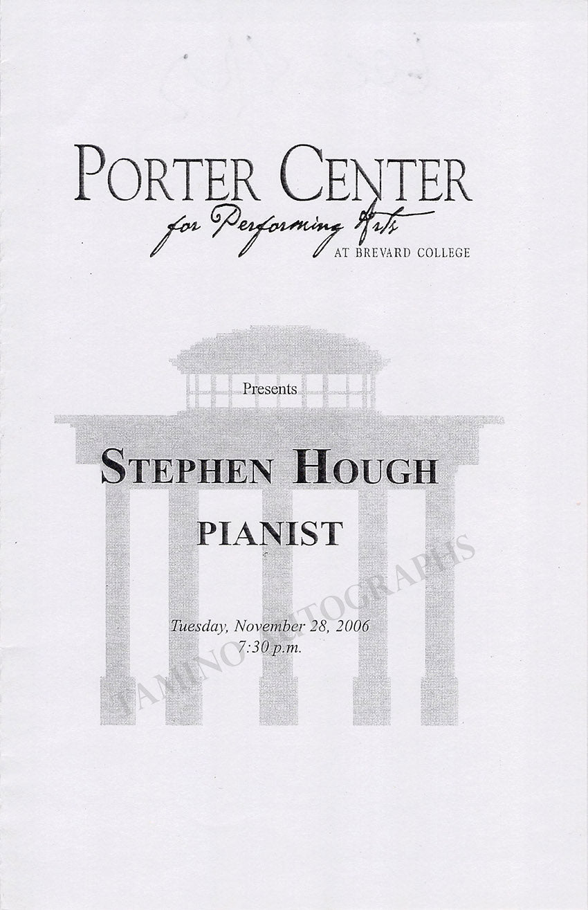 Program for a performance of the British pianist at the Porter Center for Performing Arts in North Carolina, USA, in November 2006, signed by him on page 2.