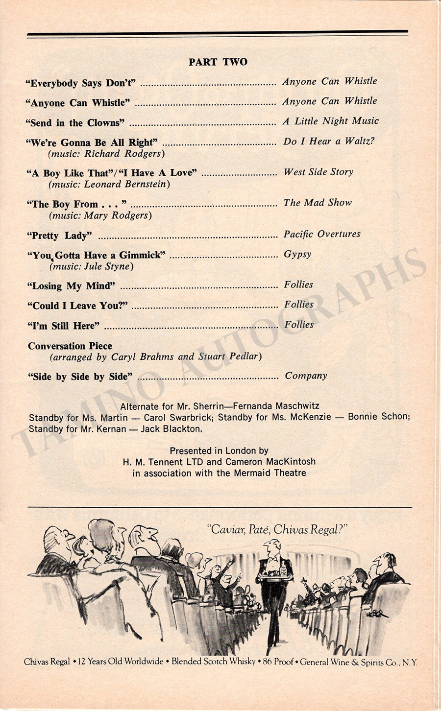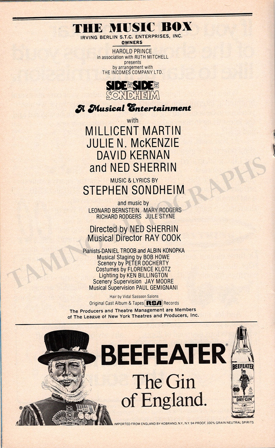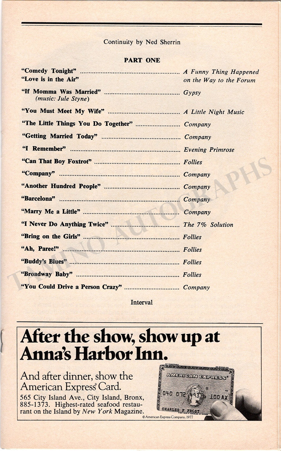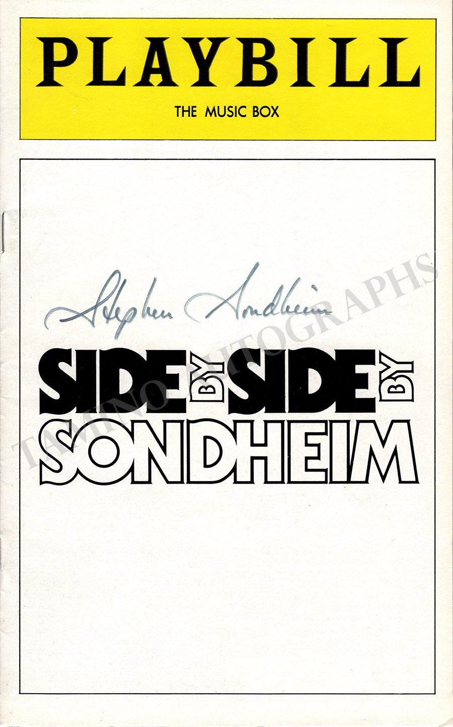 Program for a performance of the American composer's show "The Music Box: Side by Side" signed by him on the front cover, no date indicated but probably late 1970s.