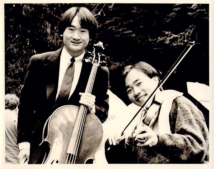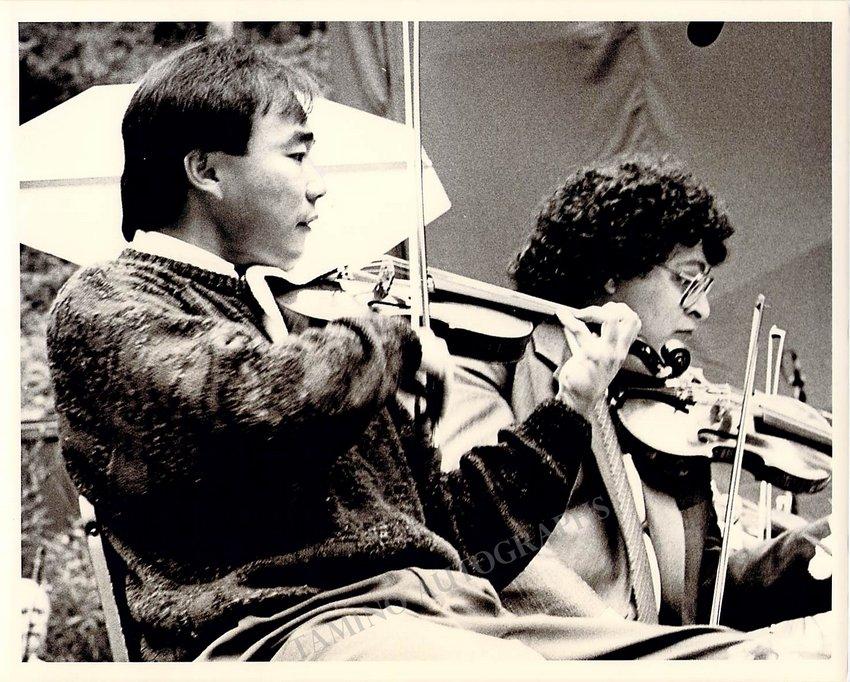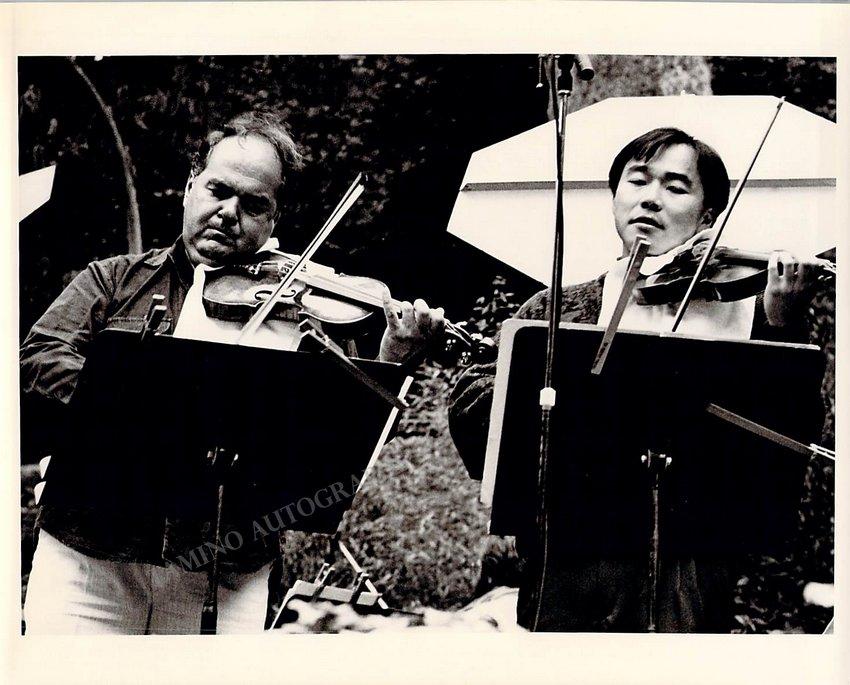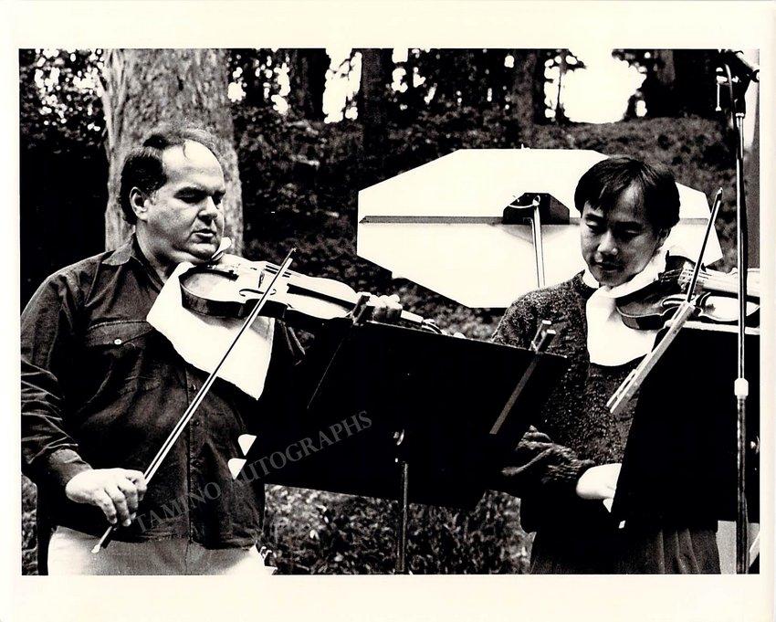 Set of 12 original prints, each signed on verso by photographer Jim Arkatov, dated in 1990. Portraits of many celebrated violinists and other string instrumentalists performing in tribute to the great American Violinist Issac Stern during his 70th Birthday celebrations at the Stern Grove in San Francisco in 1990. Each one is 8 x 10 inches, in excellent condition.