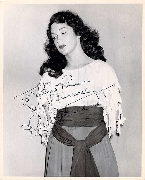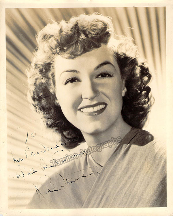 Signed publicity photograph, shown as herself, inscribed. Size is 8 x 10 inches, with small crease on top right of photo but in otherwise excellent condition.