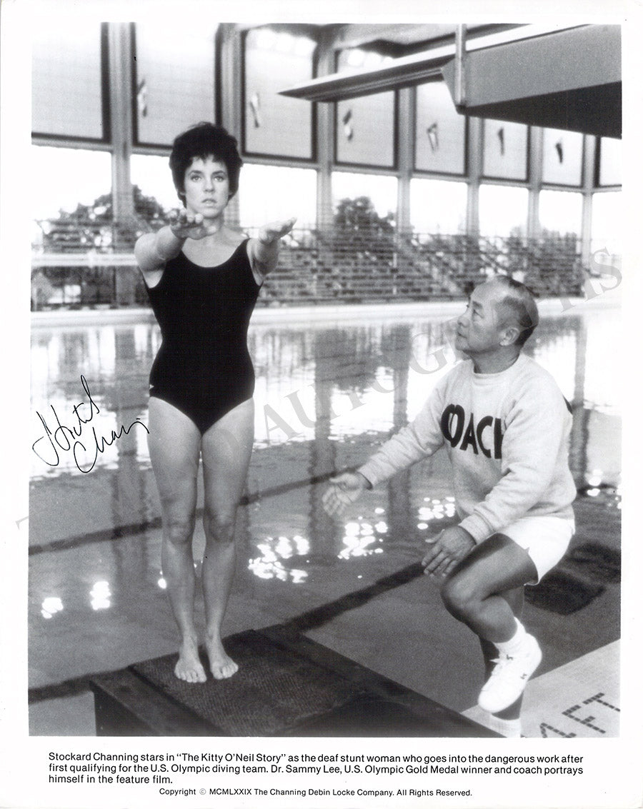 Gorgeous black-and-white movie-still photograph signed by her, shown as Phoebe Baskin in The Big Bus (1978). Size is 9.8 x 8 inches, in excellent condition.