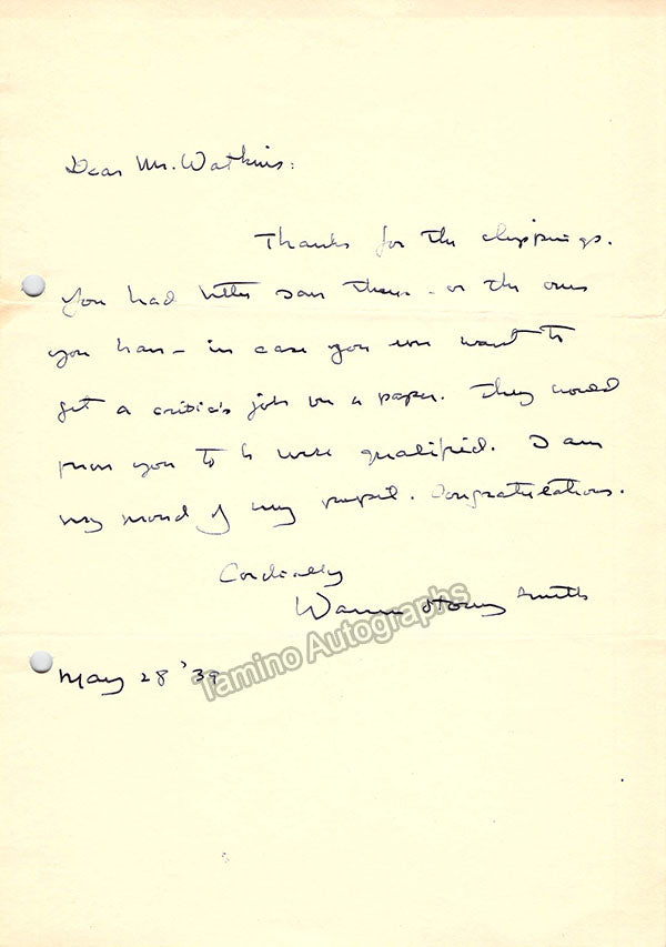 Storey Smith, Warren - Autograph Letter Signed + 2 Typed Letter Signed Storey Smith, Warren - Autograph Letter Signed + 2 Typed Letter Signed Storey Smith, Warren - Autograph Letter Signed + 2 Typed Letter Signed