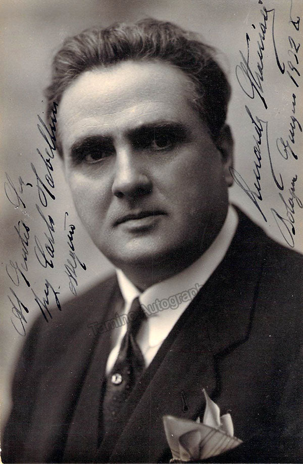 Italian baritone (1875-1955), who had a very successful and prolonged career interpreting Italian operas. Signed photograph, shown as himself, extensively inscribed, dated in Bologna in 1922. Stamped on verso by photographer A. Badodi, Rome. Size is 3.75 x 5.75 inches, beautiful vintage item in excellent condition.