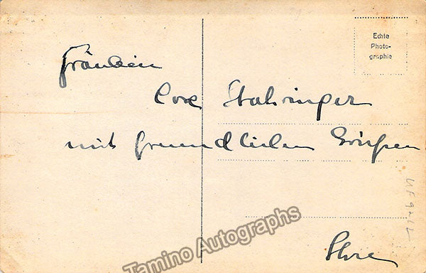 Signed postcard photograph, shown in role. Photo by Bauer photo studio, Karlsruhe. Blind stamped on front by photographer G. Ruf, Freiburg. Size is 3.5 x 5.5 inches, vintage photo in very good condition.