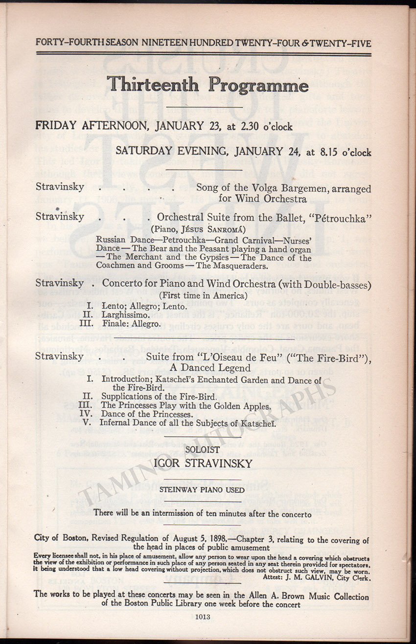 Stranvinsky, Igor - Concert Program Boston 1935 - Tamino Stranvinsky, Igor - Concert Program Boston 1935 - Tamino