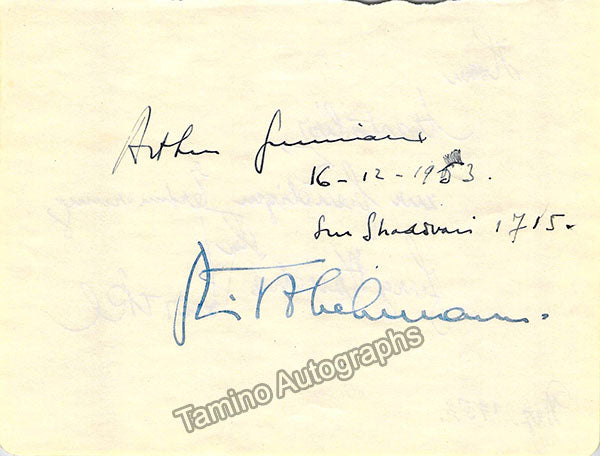 Album page signed by him on December 16, 1953. Also signed on verso by an unidentified signer (not shown). Size is 6 x 4.5 inches, in very good condition.