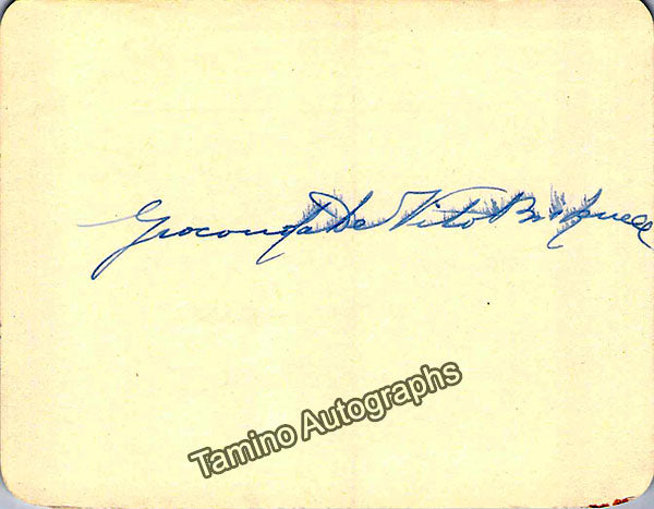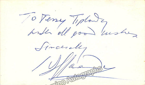 Card signed by him attached with a small half-tone black-and-white photo of him. Size is 5.75 x 4.1 inches, in excellent condition.