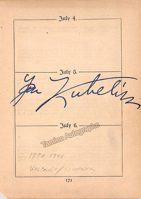 Hungarian violinist (1892-1973). Album page signed by him in 1931. Size is 5.3 x 5.5 inches, in excellent condition.