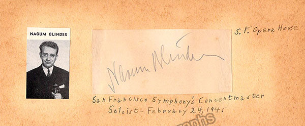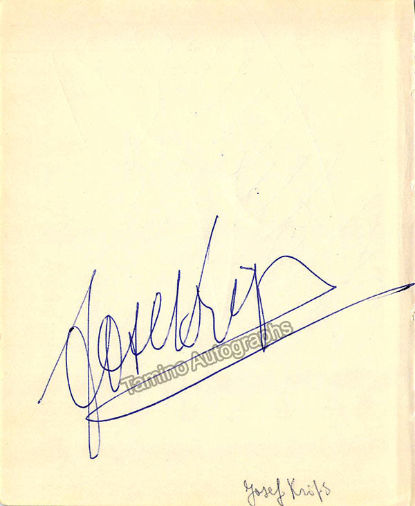 Album page signed by him in 1963, signed on verso by conductor Josef Krips. Size is 4.25 x 5.25 inches, in excellent condition.