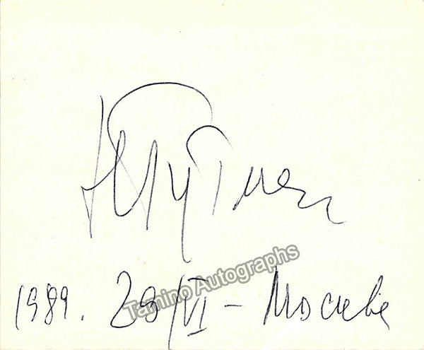 Card signed by her in Moscow, 1989. Size is 3.5 x 2.8 inches, in excellent condition.