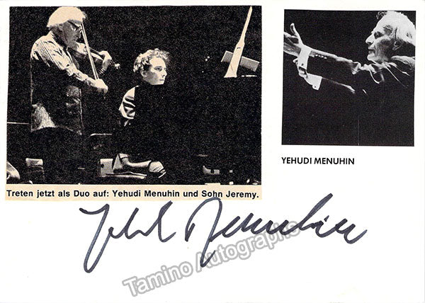 Israeli-American violinist (b.1948). Card signed by him, attached with a small half-tone photo of him. Size is 5.75 x 4.3 inches, in excellent condition.