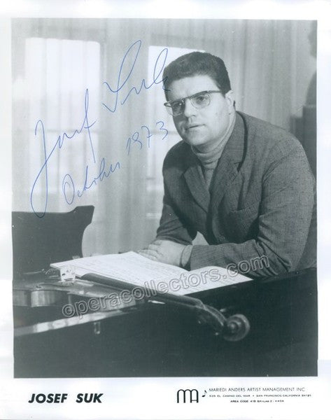 Czech violinist, chamber musician and conductor, grandson of composer Josef Suk and great-grandson of Antonin Dvorak. Signed photo, shown young with his violin examining a score, dated 1973, 8 x 10 inches, excellent