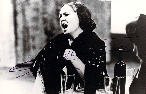 Greek soprano (1943-2004), initially seen as "the next Callas". Signed photograph, shown in role (possibly Santuzza in Mascagni's Cavalleria Rusticana). Size is 6.25x 9.5 inches, in excellent condition.