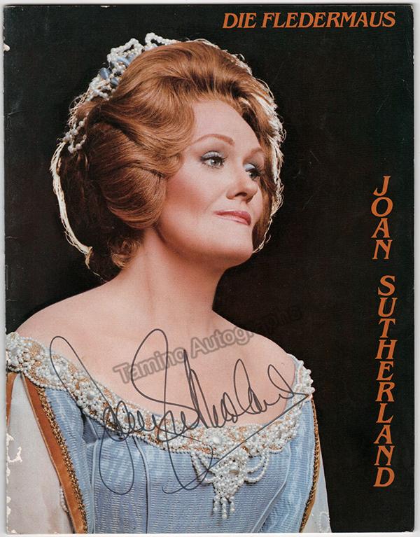 Full program for a performance of Die Fledermaus at the San Diego Opera, October, 1980. Signed on the cover by soprano Joan Sutherland, and on the cast page inside by conductor Richard Bonynge.