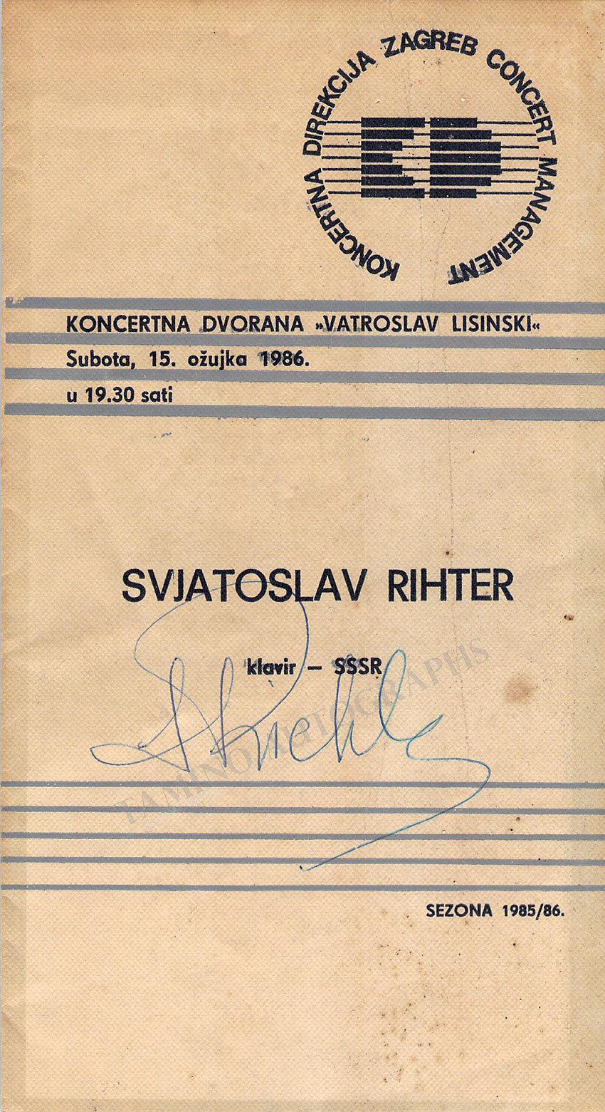 Richter, Sviatoslav - Signed Program Zagreb 1986 Richter, Sviatoslav - Signed Program Zagreb 1986