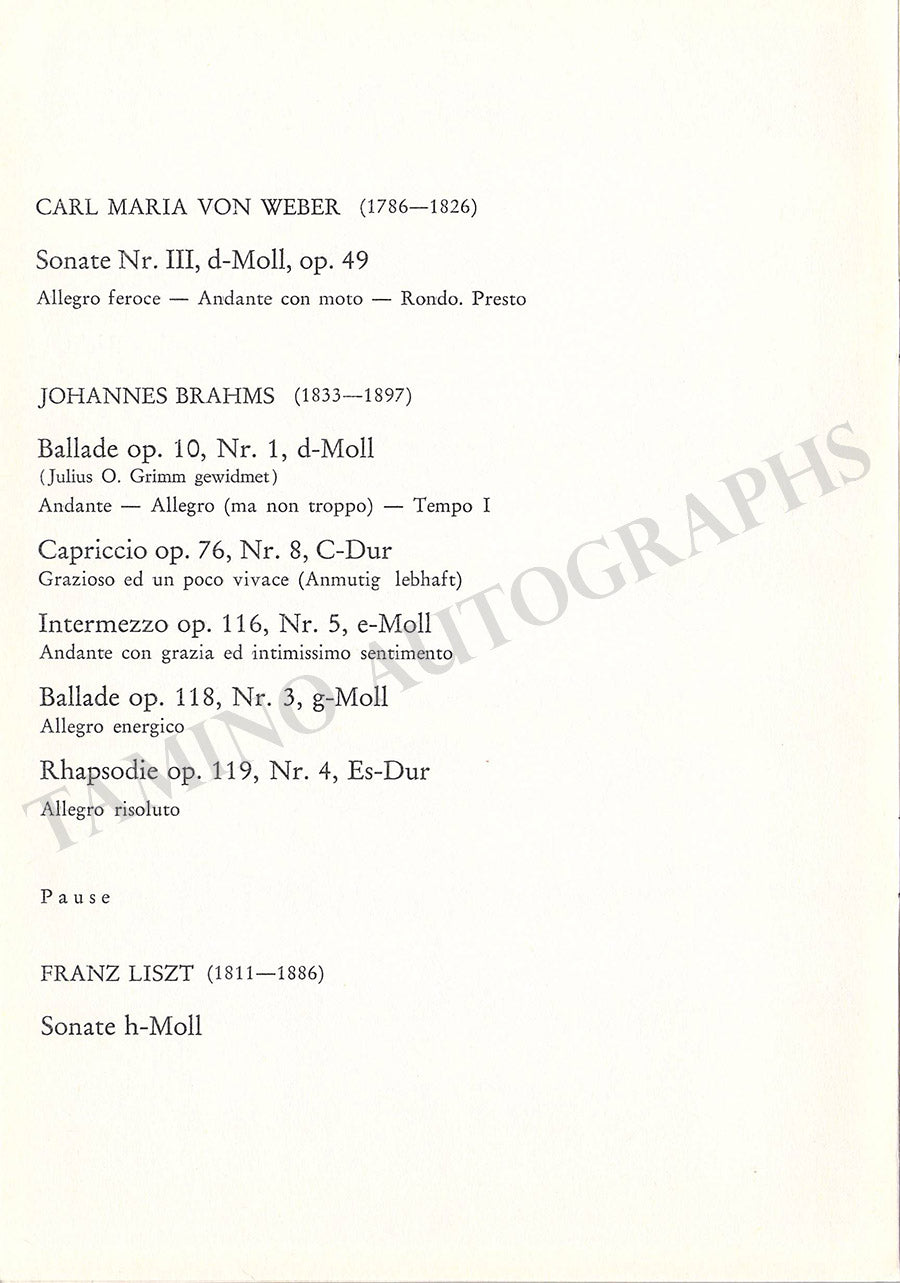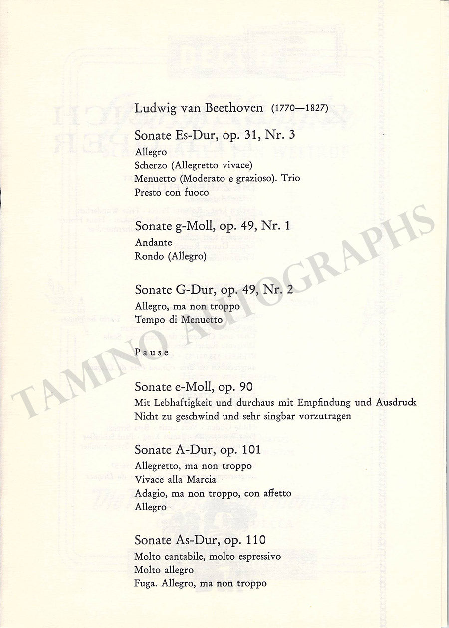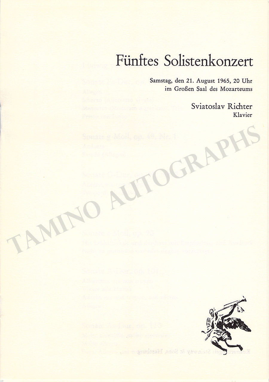Set of 2 unsigned concert programs for performances of the celebrated Russian pianist at the Salzburg Festival in 1965 and 1966.