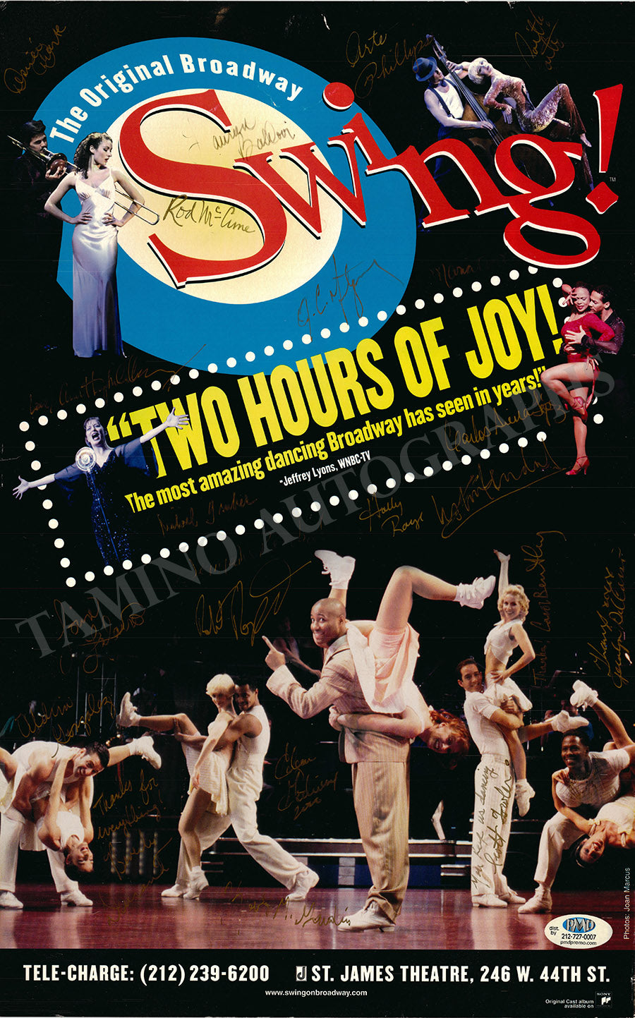Original poster for a Broadway production of the musical Swing! at St. James Theatre, signed by many members of the cast.