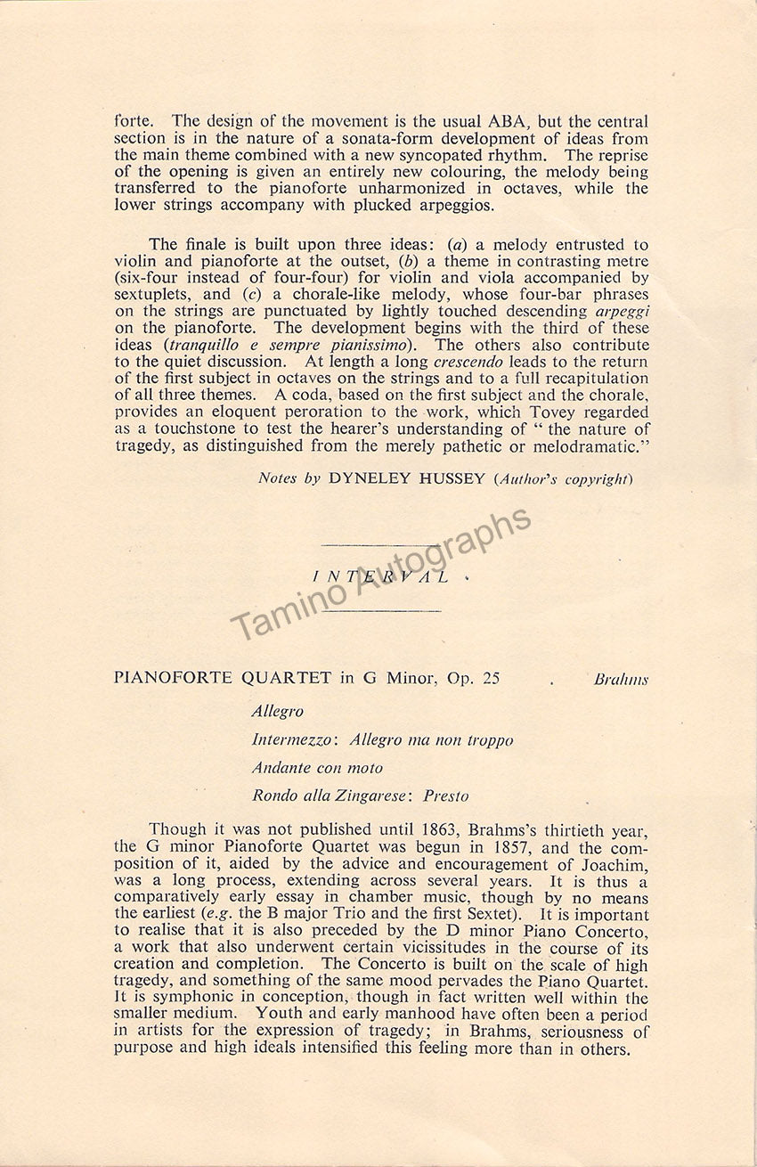 Szigeti, Joseph - Primrose, William - Curzon, Clifford - Signed Program London 1952
