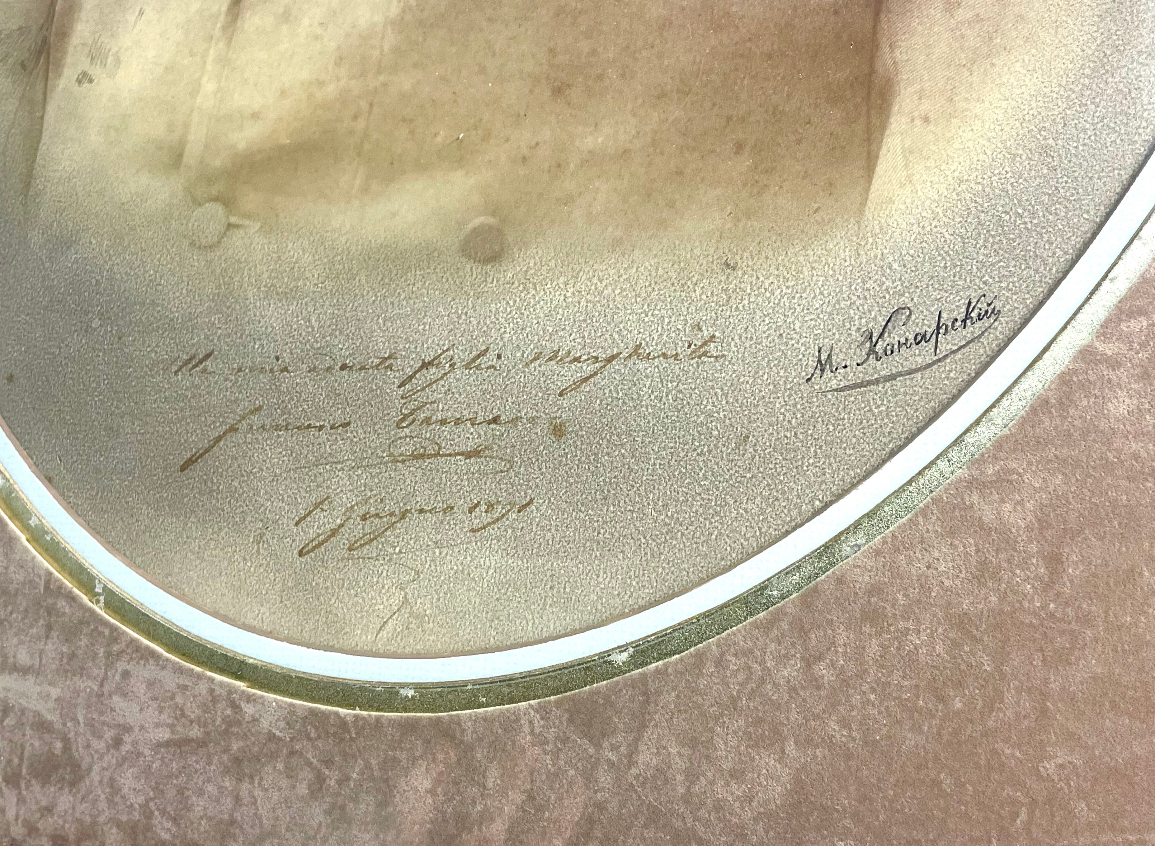 Hand-painted portrait in color, signed by artist M. Konarski, also signed by Tamagno who inscribed this large portrait to his daughter Margherita ("Alla mia adorata figlia Margherita - Francesco Tamagno, 1 Giugnio 1891")