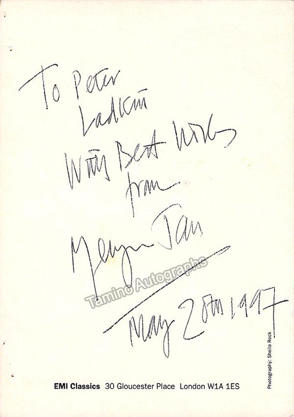 Singapore-born British classical pianist (b.1956). Signed promo photo by EMI Classics. Signature and inscription on verso, dated by the pianist in 1997. Size is 4.1 x 5.75 inches, staple holes, in very good condition.