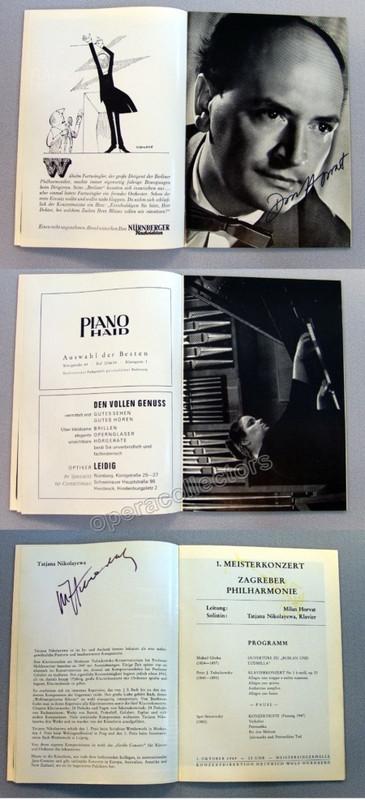 Signature next to program page. Signed portrait of conductor MILAN HORVAT (21 x 15 cm). Zagreb Philharmonic in Nurnberg 1. October 1969. Glinka, Tchaikovsky piano concerto, Tchaikovsky. 21 x15 cm.