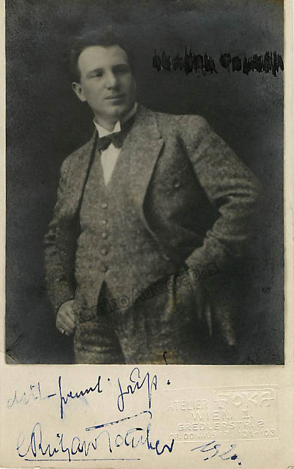 Star Austrain tenor (1891-1948), signed photo postcard, shown as himself, dated in 1920. Blind stamp on front by photographer Atelier Foka, Vienna. Size is 3.25 x 5 inches, with some silvering around borders, otherwise in good condition.