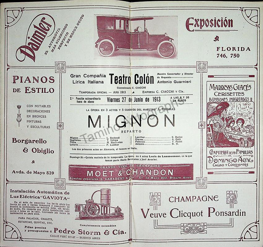 Performance of Mignon, June 27th, 1913, with Tito Schipa and Maria Barrientos, in very good condition.