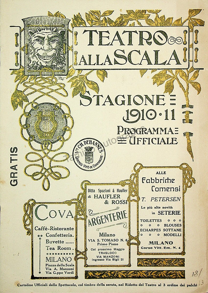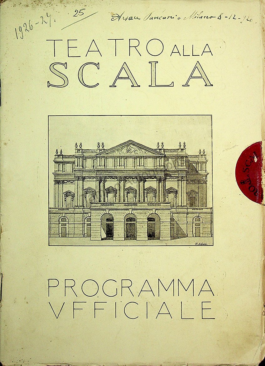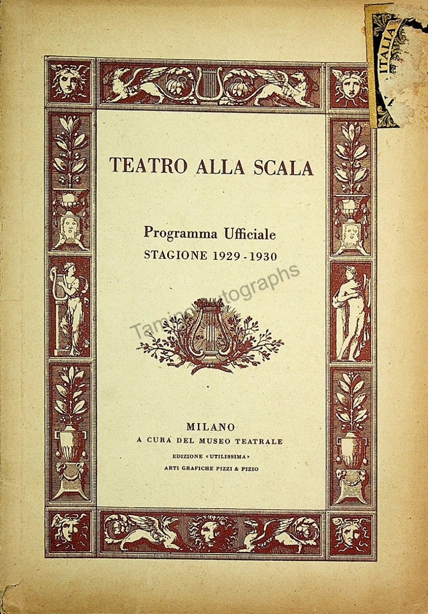 Lot of 10 full programs for performances at Teatro La Scala, Milan, period 1911 through 1939. One is a full season program (season 1927-28), the other 9 are for opera performances, some with important singers, see scans.