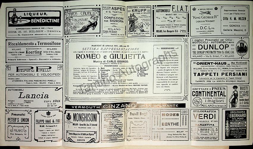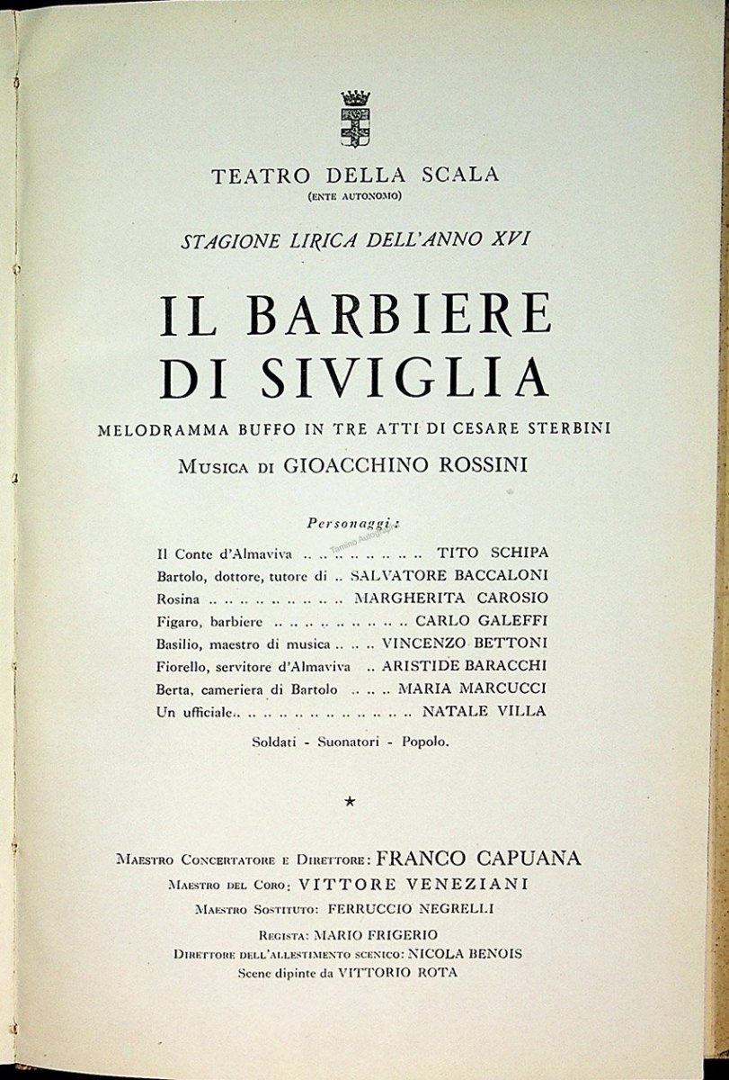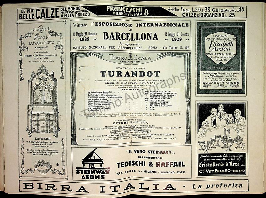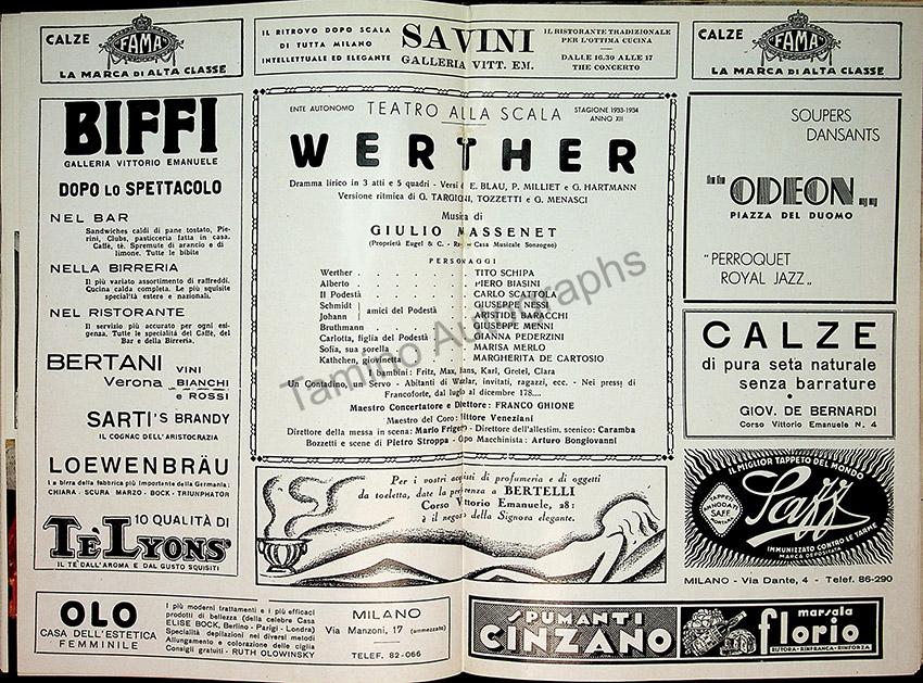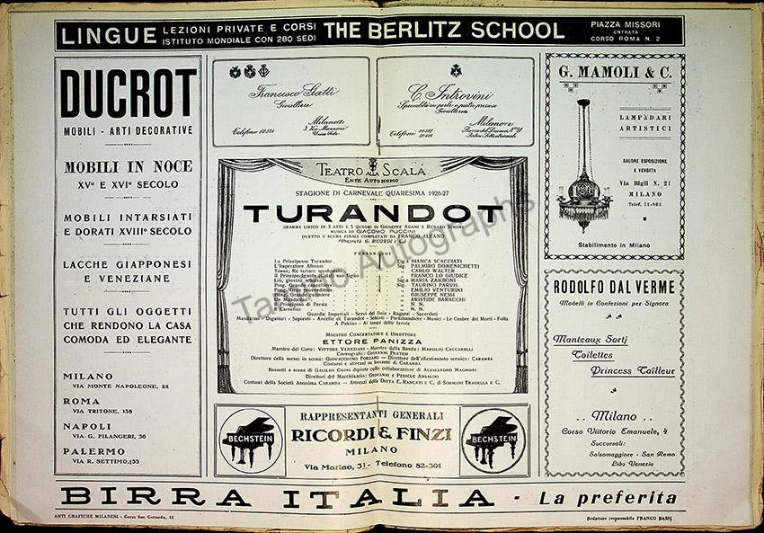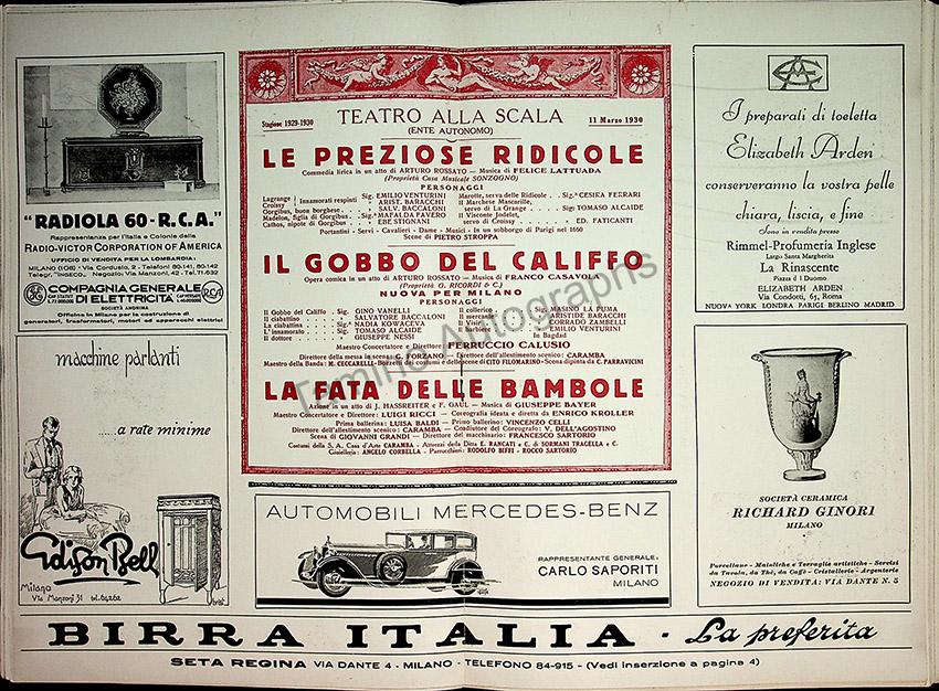 Lot of 10 full programs for performances at Teatro La Scala, Milan, period 1911 through 1939. One is a full season program (season 1927-28), the other 9 are for opera performances, some with important singers, see scans.