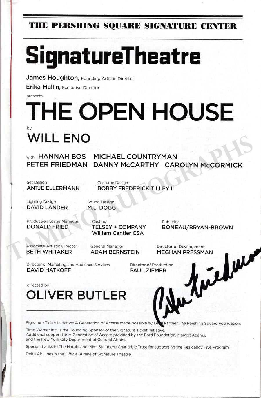 Original playbill for a production of Will Eno's play The Open House at The Pershing Square Signature Center, featuring Hannah Bos, Michael Countryman, Peter Friedman, Danny McCarthy and others; signed by some members of the cast.