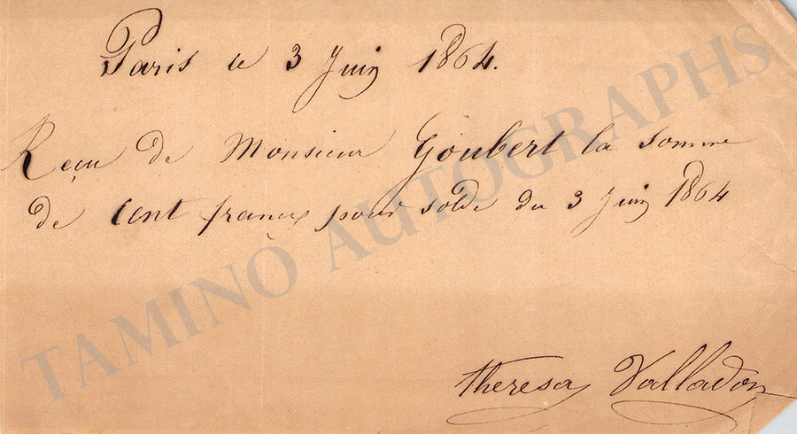 Theresa (Emma Valladon) - Signed Receipt 1864