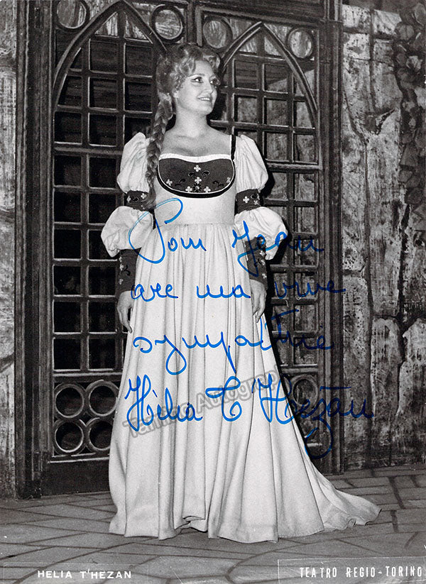 Signed photograph, shown as Mimi in Puccini's La Boheme. Size is 4 x 5.75 inches, in excellent condition.