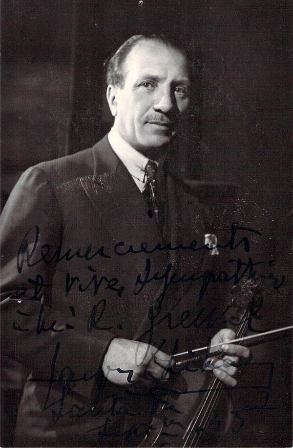 Famous French violinist (1880-1953), signed photo postcard, inscribed and dated in Santa Fe, Argentina in 1935. Stamped on verso by photographer Hrand, Paris. Size is 3.5 x 5.25 inches, in excellent condition.