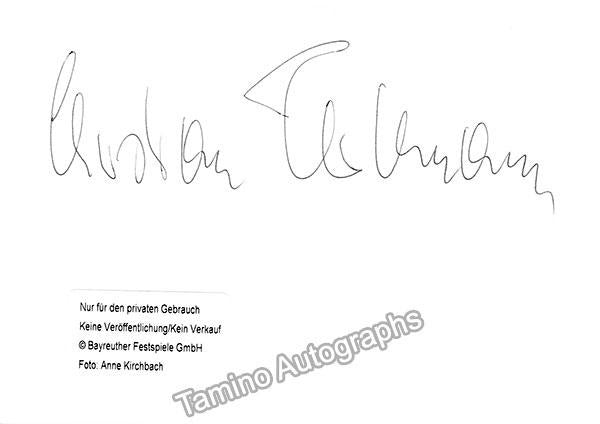 Celebrated German conductor (b.1959), currently chief of the Staatskapelle Dresden. Since 2000 has been working as Bayreuth Festival's Music Director. Signed photo, shown in rehearsal. Signed on both front and verso. Photo by Anne Kirchbach, Bayreuth. Size is 4 x 5.75 inches, in excellent condition.