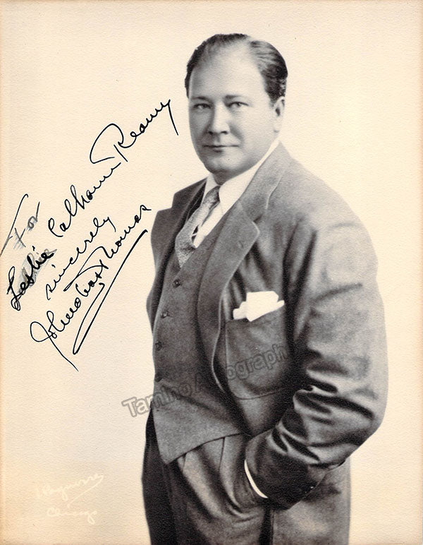 Signed photograph, shown as himself, inscribed. Front side also contains printed signature of photographer De Gueldre, Chicago. Size is 7 x 9 inches, in excellent condition.