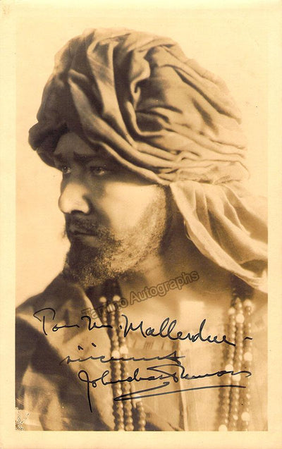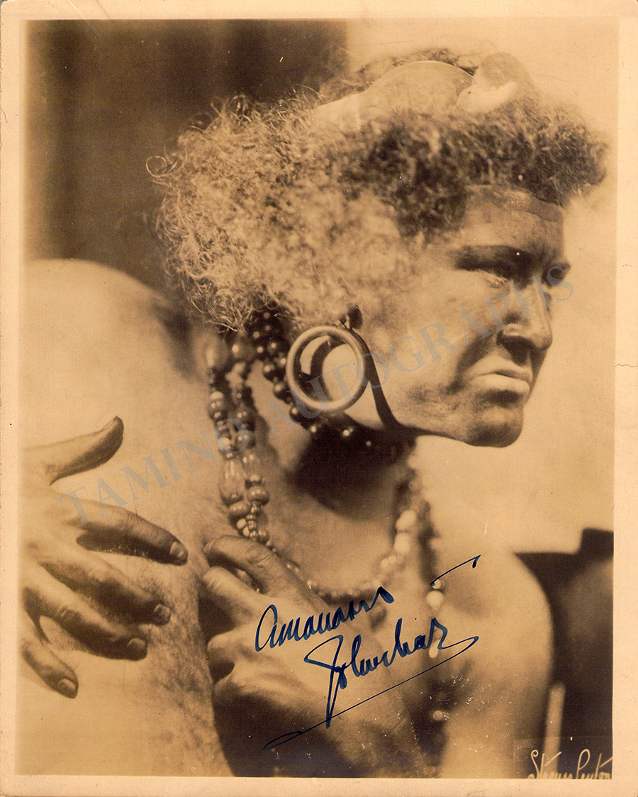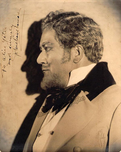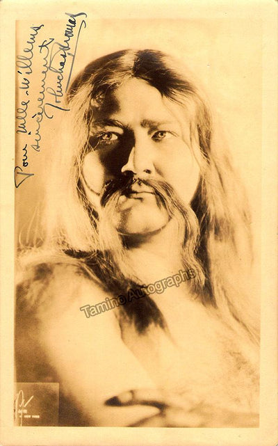 Fine sepia photograph signed by him, shown as Amonasro in Verdi's Aida at Brussels' La Monnaie Theater. Size is 8 x 9.9 inches, in very good condition.