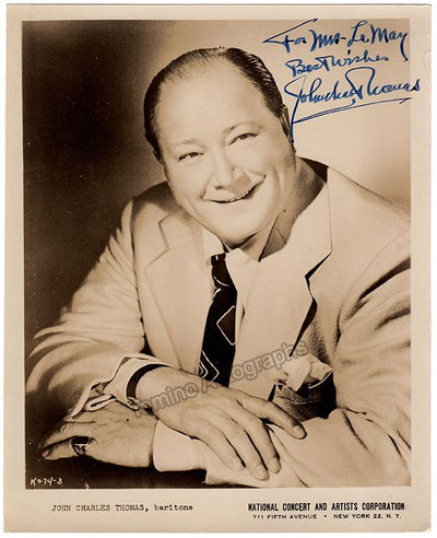 Signed photograph, shown as Figaro in Rossini's Barbiere, inscribed. Photo by Leon Elzin, New York. Size is 8 x 10 inches, small creases on top left and bottom right, otherwise in very good condition.