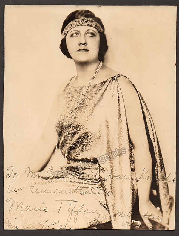 American soprano (1881-1948), signed photograph, shown in role, signed in New York at the Metropolitan Opera, dated in 1925. Inscribed. Printed signature on front of photographer Apeda, New York. Size is 7 x 9.25 inches, beautiful vintage photo, in excellent condition.