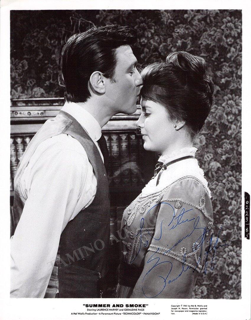 American TV and Film actress (1942-2020).  Great promo movie-still photograph of the film "Summer & Smoke" (1962) signed by her.  Size is 8 x 10.1 inches, in excellent condition.