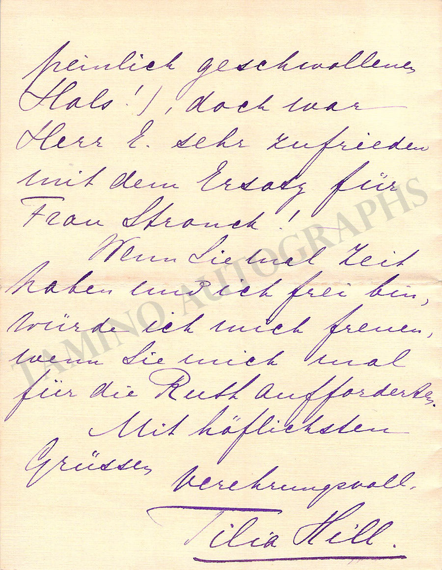 Hill, Tilia - Autograph Letter Signed 1910 Hill, Tilia - Autograph Letter Signed 1910 Hill, Tilia - Autograph Letter Signed 1910
